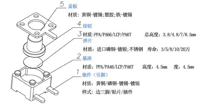 輕觸開關TS-1102,又被稱為三腳輕觸開關,4.5*.4.5插件輕觸開關,其實此開關的實際長寬尺寸為4.6*4.6mm。此開關外形跟TS-1109一樣,都是方形的,就是長寬的尺寸小一號,此開關的高度有四個標準:3.8mm/4.8mm/5.0mm/7.0mm;驅動力度有三個標準:100克力/160克力//250克力。此款輕觸開關為插件封裝,本公司還有一款與其尺寸一樣的貼片輕觸開關型號為:輕觸開關TS-1102A 。此款插件輕觸開關不耐高溫,適合手工焊接和波峰焊,輕觸開關TS-1102A 為貼片輕觸開關,產品耐高溫適合回流焊。