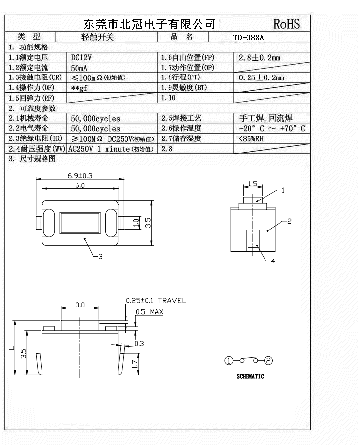 產品名稱:TD-38XA輕觸開關
