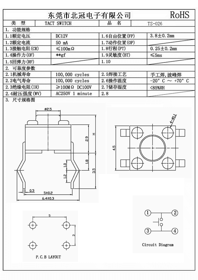 產品名稱:TS-026輕觸開關