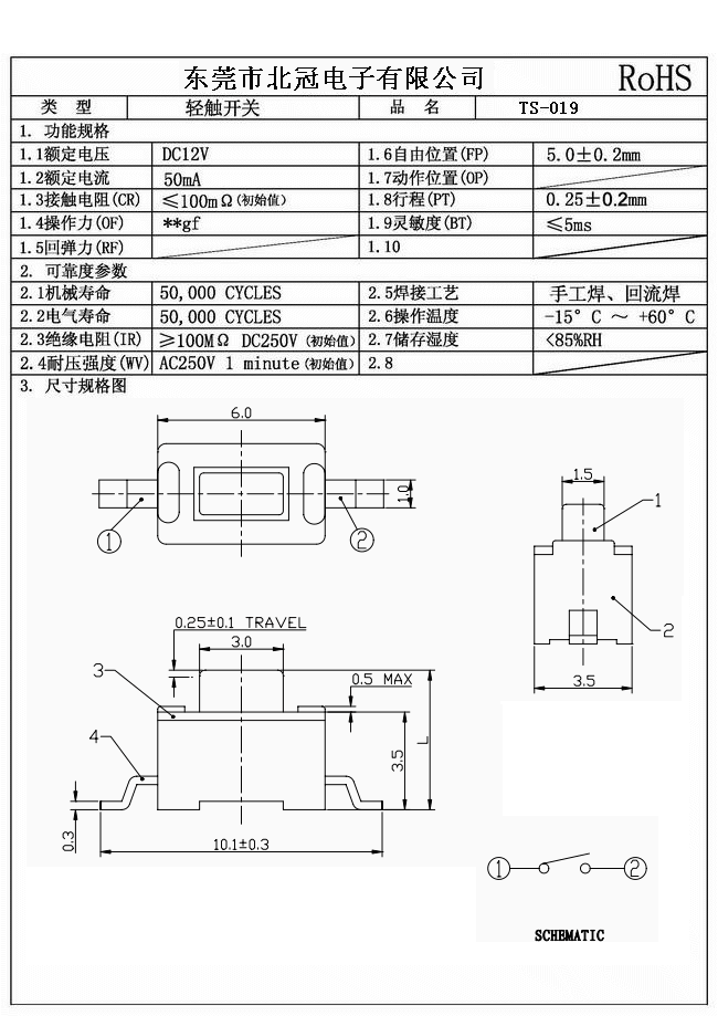 7.Travel:0.25±0.1mm