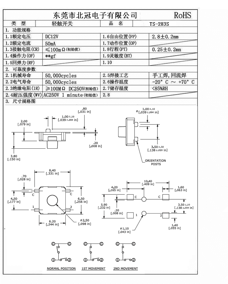 3.Lnsulation Resistance: ≥100mΩ DC250V