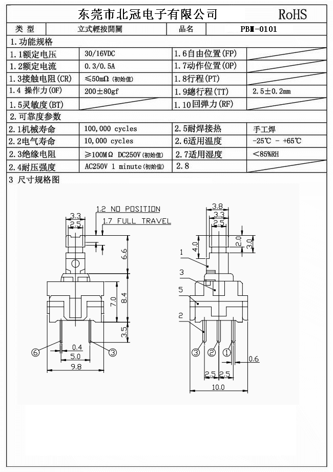 3.Lnsulation Resistance: ≥100mΩ DC500V