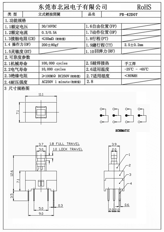 產品名稱:PB-42D07按鍵開關