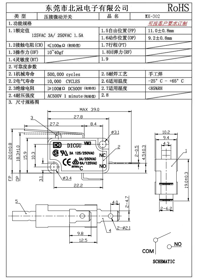 1.Rating : DC30V 0.1A