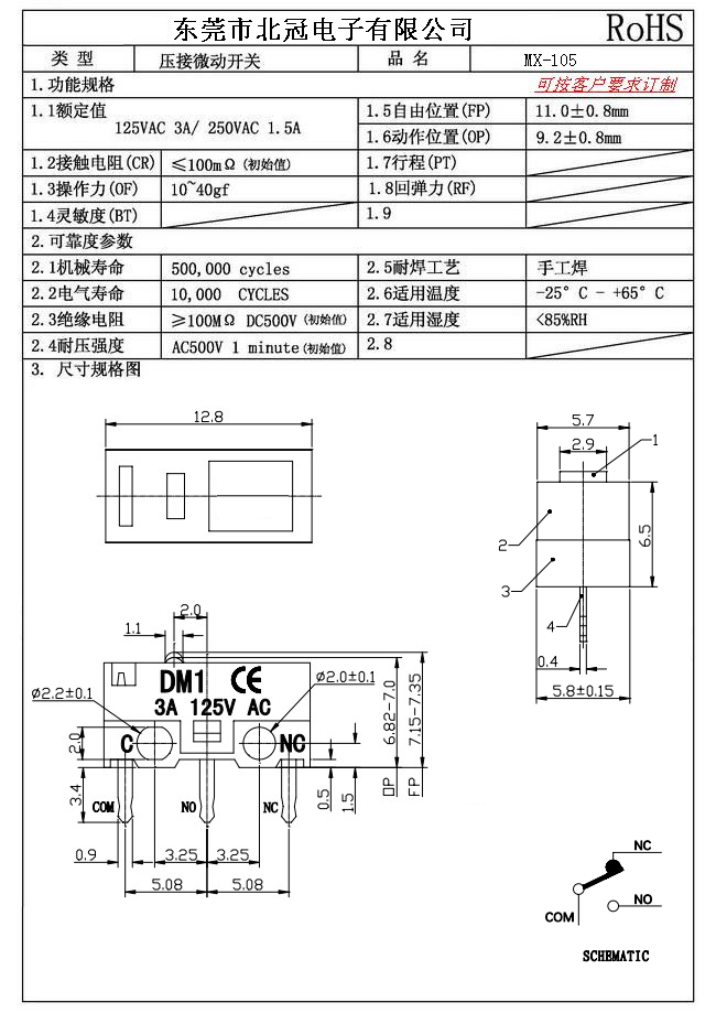 3.Lnsulation Resistance: ≥100mΩ DC500V