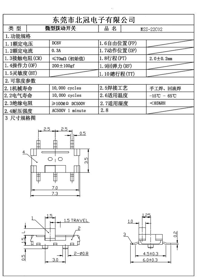 產品名稱:MSS-22C02撥動開關