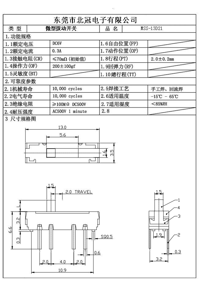 產品名稱:MSS-13D21撥動開關
