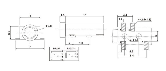 品名:2.5耳機插座 耳機插座技術參數: 1.額定負荷:0.5A 30V DC 2.按觸電阻:100 mΩ max. 3.使用溫度:-20℃~70℃ 4.插拔力:3-20N 5.使用壽命:5,000cycles 耳機插座主要組成部件: 1.塑膠底座 2.磷銅或鈹銅簧片