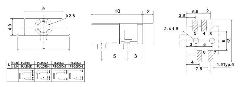 品名:2.5耳機插座 耳機插座技術參數: 1.額定負荷:0.5A 30V DC 2.按觸電阻:100 mΩ max. 3.使用溫度:-20℃~70℃ 4.插拔力:3-20N 5.使用壽命:5,000cycles 耳機插座主要組成部件: 1.塑膠底座 2.磷銅或鈹銅簧片