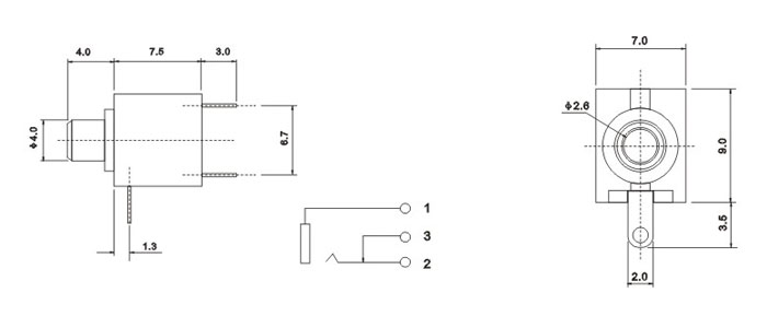 品名:2.5耳機插座 耳機插座技術參數: 1.額定負荷:0.5A 30V DC 2.按觸電阻:100 mΩ max. 3.使用溫度:-20℃~70℃ 4.插拔力:3-20N 5.使用壽命:5,000cycles 耳機插座主要組成部件: 1.塑膠底座 2.磷銅或鈹銅簧片