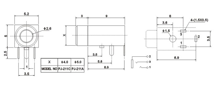 產(chǎn)品名稱:PJ-211C 品名:2.5耳機(jī)插座 |