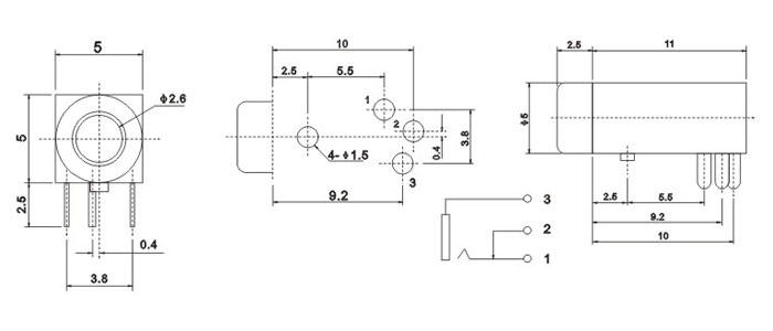 品名:2.5耳機插座 耳機插座技術參數: 1.額定負荷:0.5A 30V DC 2.按觸電阻:100 mΩ max. 3.使用溫度:-20℃~70℃ 4.插拔力:3-20N 5.使用壽命:5,000cycles 耳機插座主要組成部件: 1.塑膠底座 2.磷銅或鈹銅簧片