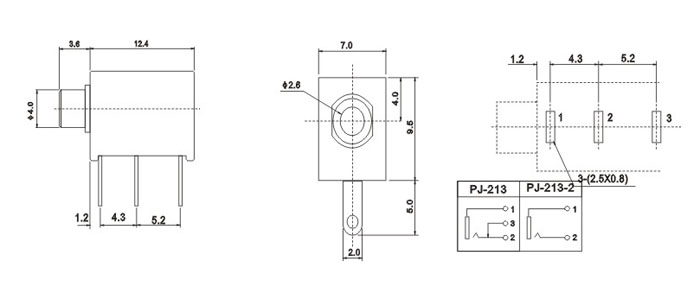 產(chǎn)品名稱:PJ-213 品名:2.5耳機(jī)插座 |