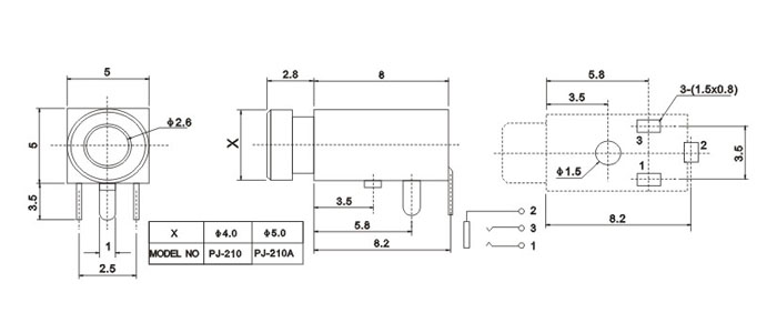 產(chǎn)品名稱:PJ-210 品名:2.5耳機(jī)插座 |