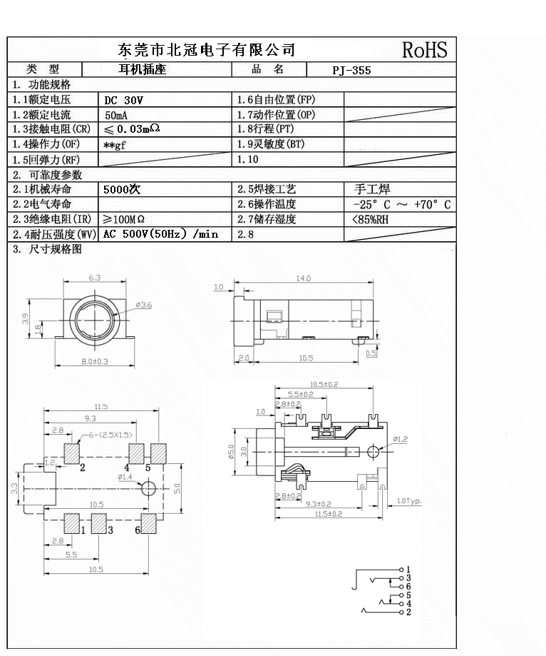 Typical Specifications Rating:0.5A 30V DC Contact Resistance:100 mΩ max. Operating temperature:-20℃~70℃ Operating force:3-20N Operating Life:5,000cycles