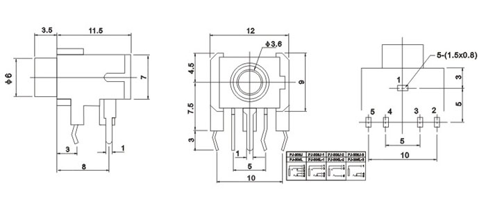 品名:3.5耳機插座 耳機插座技術參數: 1.額定負荷:0.5A 30V DC 2.按觸電阻:100 mΩ max. 3.使用溫度:-20℃~70℃ 4.插拔力:3-20N 5.使用壽命:5,000cycles 耳機插座主要組成部件: 1.塑膠底座 2.磷銅或鈹銅簧片