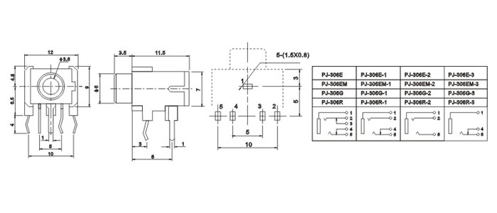 品名:3.5耳機插座 耳機插座技術參數: 1.額定負荷:0.5A 30V DC 2.按觸電阻:100 mΩ max. 3.使用溫度:-20℃~70℃ 4.插拔力:3-20N 5.使用壽命:5,000cycles 耳機插座主要組成部件: 1.塑膠底座 2.磷銅或鈹銅簧片