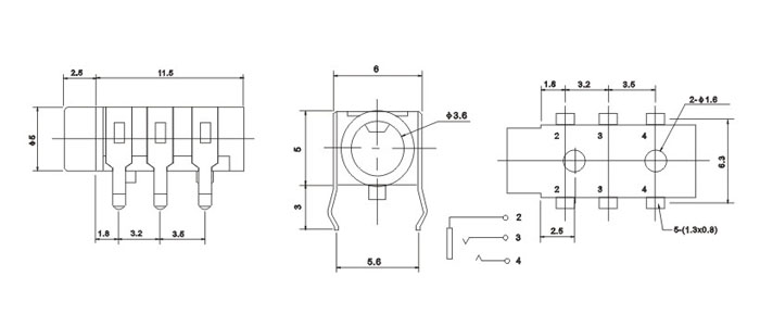品名:3.5耳機插座 耳機插座技術參數: 1.額定負荷:0.5A 30V DC 2.按觸電阻:100 mΩ max. 3.使用溫度:-20℃~70℃ 4.插拔力:3-20N 5.使用壽命:5,000cycles 耳機插座主要組成部件: 1.塑膠底座 2.磷銅或鈹銅簧片