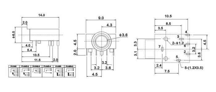品名:3.5耳機插座 耳機插座技術參數: 1.額定負荷:0.5A 30V DC 2.按觸電阻:100 mΩ max. 3.使用溫度:-20℃~70℃ 4.插拔力:3-20N 5.使用壽命:5,000cycles 耳機插座主要組成部件: 1.塑膠底座 2.磷銅或鈹銅簧片