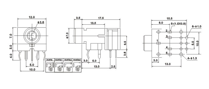 品名:3.5耳機插座 耳機插座技術參數: 1.額定負荷:0.5A 30V DC 2.按觸電阻:100 mΩ max. 3.使用溫度:-20℃~70℃ 4.插拔力:3-20N 5.使用壽命:5,000cycles 耳機插座主要組成部件: 1.塑膠底座 2.磷銅或鈹銅簧片