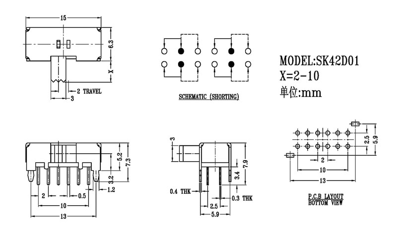 撥動開關主要技術參數/Slide Switch Main data
