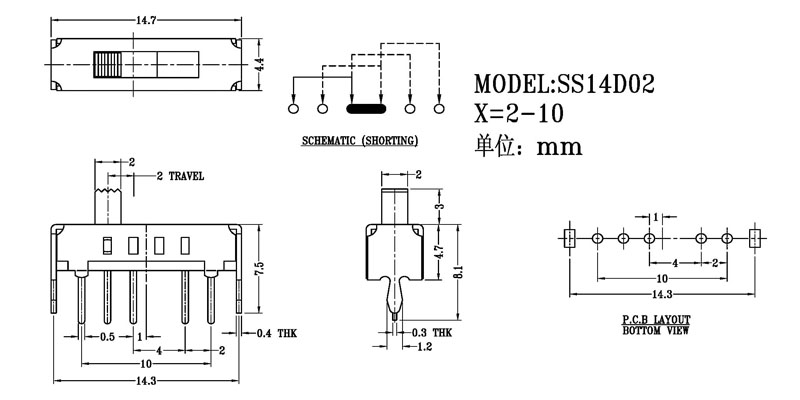 撥動開關主要技術(shù)參數(shù)/Slide Switch Main data