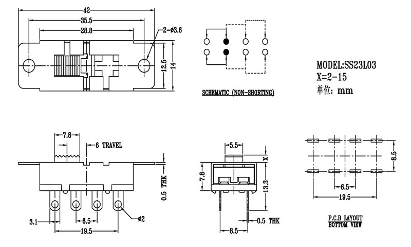 撥動開關(guān)主要技術(shù)參數(shù)/Slide Switch Main data