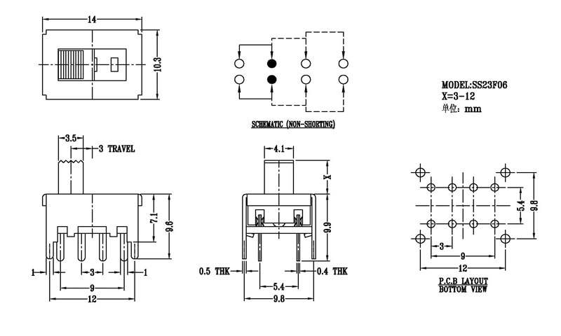 產品名稱:SS-23F06撥動開關