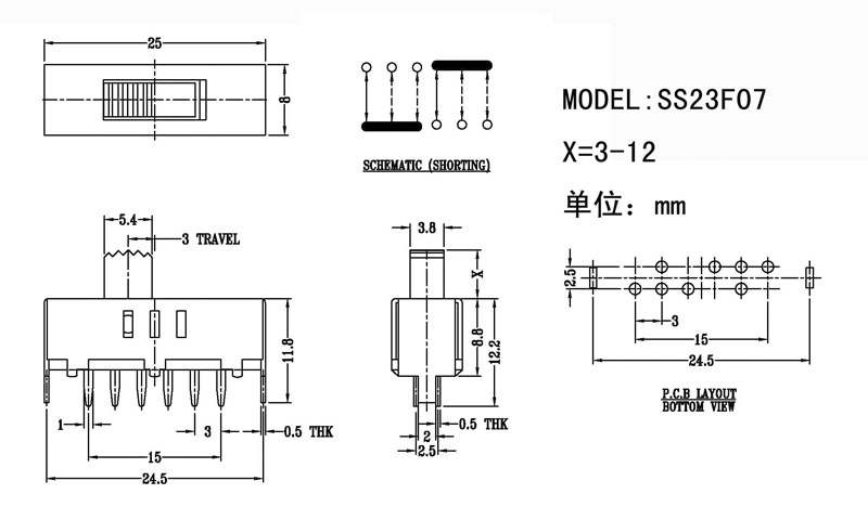 產品名稱:SS-23F07撥動開關